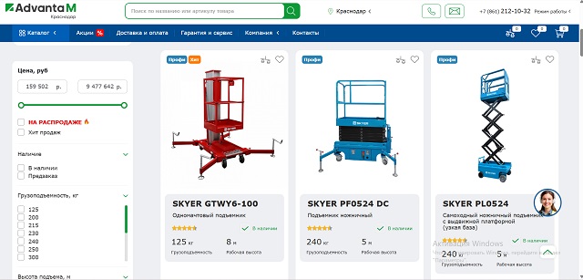 Ножничные подъемники получили свое название благодаря складной конструкции рычагов. Это популярный тип техники для работы на складах и при отделке фасадов. Главный плюс — просторная рабочая платформа и высокая грузоподъемность (от 300 до 1000 кг). Но процесс осуществляется строго вертикально, что требует свободного доступа непосредственно под зону работ.